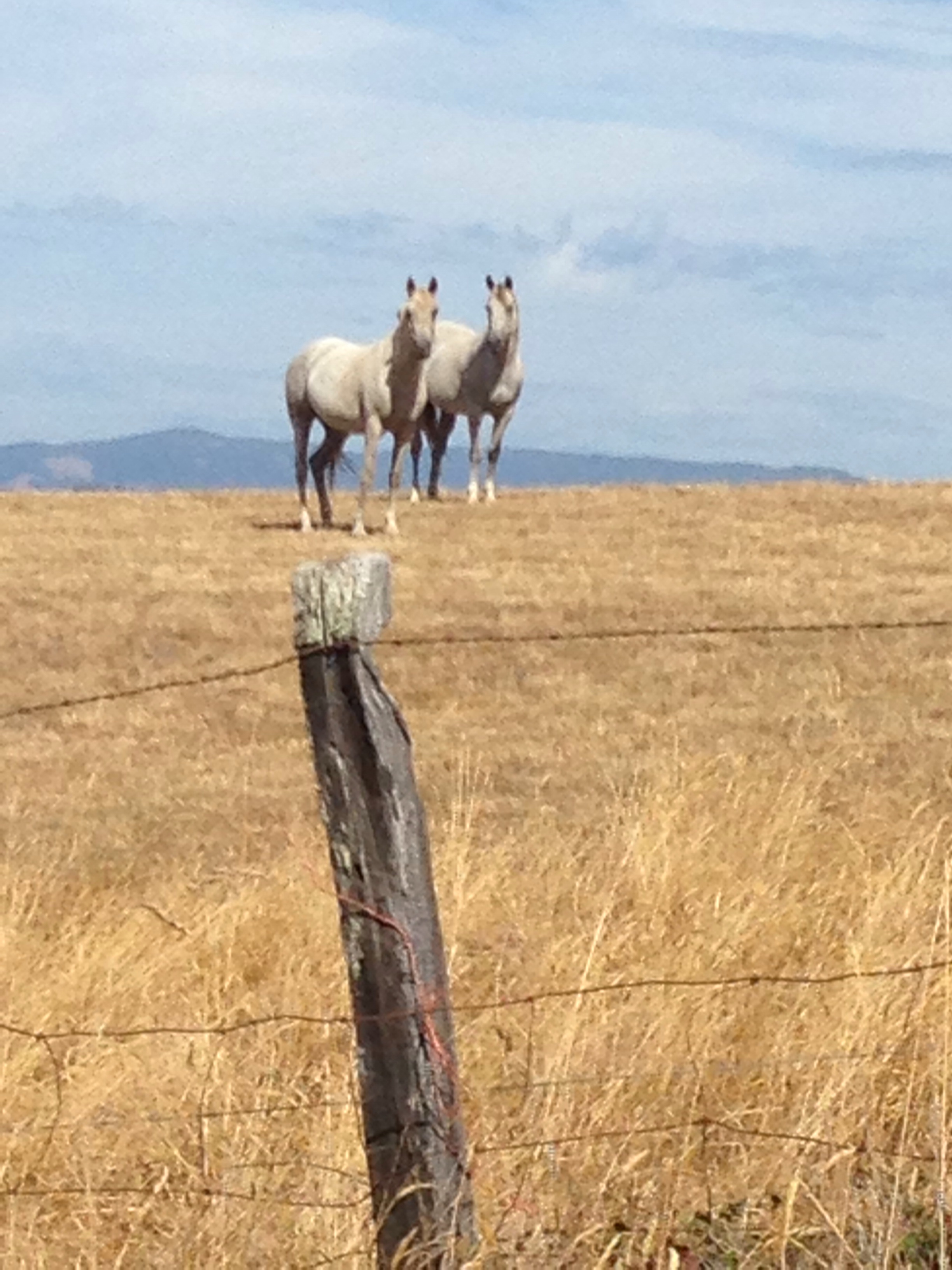 Bella is a pretty Arabian mare who was serially abused and neglected. A horse trainer rescued her from her last person, a cute horsie teenager turned back woods meth-head, and brought the horse to me. Bella has turned out to be a wonderful, thinking animal. She puzzles over complicated ways in which the trainer and I ask her to move and stretch, and she works through her confusion. She’s a smart girl. Buddy is her companion, a gelding Quarterhorse. The daughter of a nearby rancher saved him from a meat auction. As she pulled off the freeway into the auction site, she saw an old cowboy riding off the exit ramp on a knobby grey horse. She then saw the horse on the block with a note pinned to his halter: “This is a gentle, kind horse,” it read. There was no walking away from that, and home he went in her trailer. But the girl was leaving soon for college, and the rancher’s wife said, no way, he’s got to go. He ended up with us, to be Bella’s buddy and to keep her from nervously pacing the fenceline. He must have nine lives, or at least three — he’s ugly as sin and lame to boot, but he’s been rescued at least twice. He is, indeed, a nice guy. Someday I hope to track down the old cowboy to tell him that the grey is alive and well.