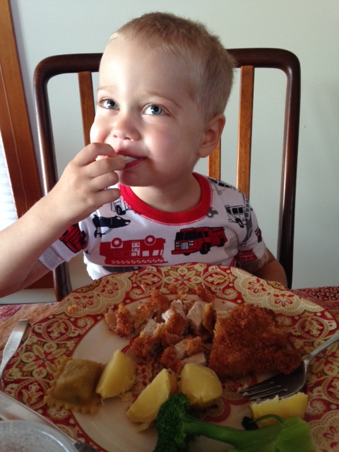 On the upside, when I realized yesterday evening just how bad things had gotten and that the cumulative effect of the steroids had completely turned Tristan into a crazy, ravenous, raging, monster, I finally called the 24-hour pediatric oncology service to ask when Tristan’s regimen might no longer include steroids. His pill bottle said August 17 AM was the last dose of the cycle, but no one had told me to stop giving them to him, and there were more in the bottle. A wonderful doctor on the service gave me the best news I’ve had in a while: never again will Tristan have to take steroids for a whole month straight! Phew. There will be bursts, for a few days at a time, over the next few months, but Induction is the worst part as pertains to steroid effects.