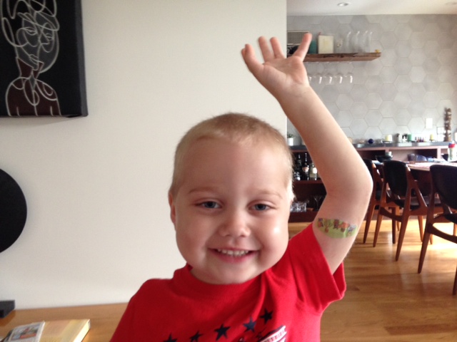 Yesterday I had a phone call from our outpatient nurse, Ilana. “This is gonna make your day,” she said. She had the results of Tristan’s Tuesday bone marrow biopsy in hand. This particular biopsy is a really important one, used to assess Tristan’s progress during Induction and then to map out his treatment plan for the next almost-three years. As I understand it, these results, together with the genetic markers, will place Tristan into either a high risk, average risk, or low risk category.