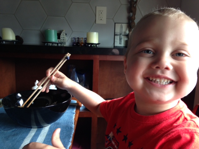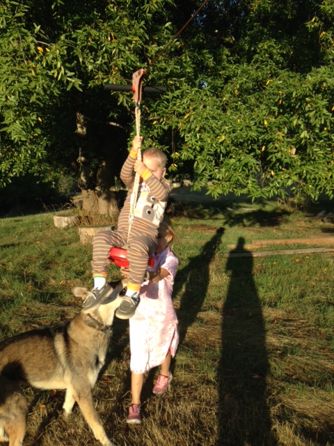 We are having a wonderful time at home. Tristan is SO happy to be with his siblings. Tomas deserves really special credit — he is an amazing big brother and is treating Tristan with such kindness and gentleness. Yesterday afternoon he played outside with Phoebe and Tristan for a long time. They dressed as knights and wore pretend armor and carried pretend swords. There were wagons involved and Otis, Tomas’ dog, seemed pivotal (though perhaps of his own making). I was making dinner in the kitchen and watching them out the window, wondering if I shouldn’t be letting this happen. It all seemed so…normal. But, they weren’t doing anything dangerous (after I put a stop to a plan for putting a car seat for Tristan into one of the wagons). As long as Tristan wasn’t falling and getting injured, and as long as all six hands involved were scrubbed clean afterward, I figured we were okay. So far so good! And Tristan was incredibly happy.